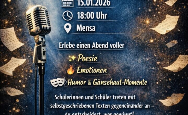 Am Donnerstag, den 15. Januar 2026, lädt die Jahrgangsstufe Q1 des Willy-Brandt-Gymnasiums herzlich zum diesjährigen Poetry-Slam-Abend ein. Die Veranstaltung findet